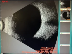 A thick jelly is placed on the ultrasound probe by the retina specialist, which is then gently placed on the eye over the lid. It is a safe and painless procedure, no X-ray exposure occurs in this test. The retina specialist uses these echo pictures to arrive at a diagnosis, the probable future health of your eye, and a treatment plan. However, the test only reveals the structure of the inside of the eye.
